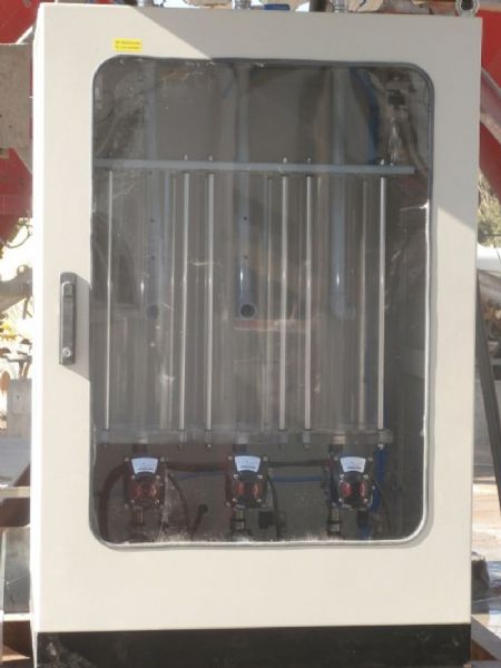 Fabricamos também balanças com um vaso mas com a possibilidade de pesar no mesmo vaso até 4 aditivos, com sistema automático de lavagem do vaso, para a não contaminação de produtos.